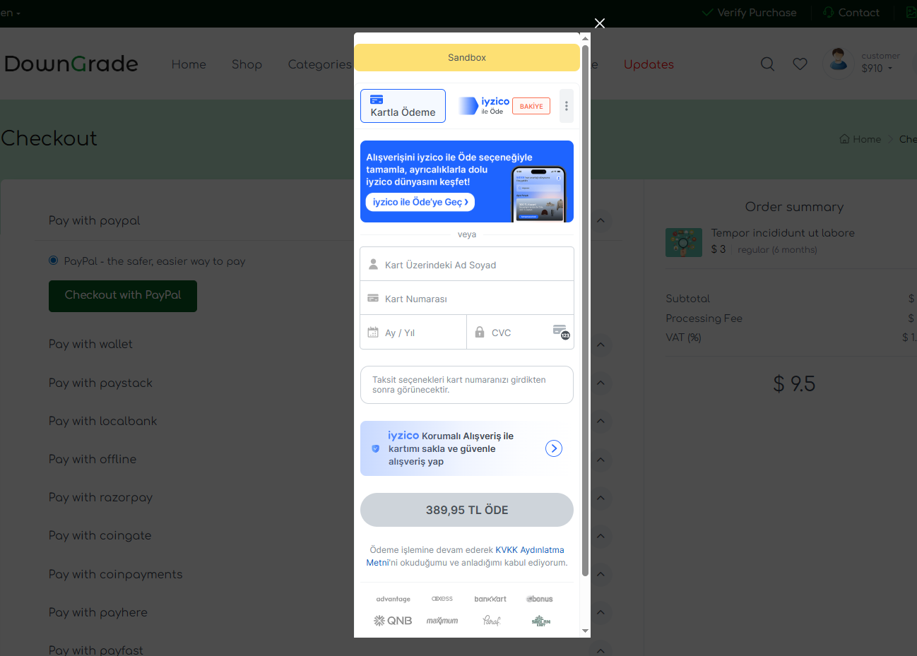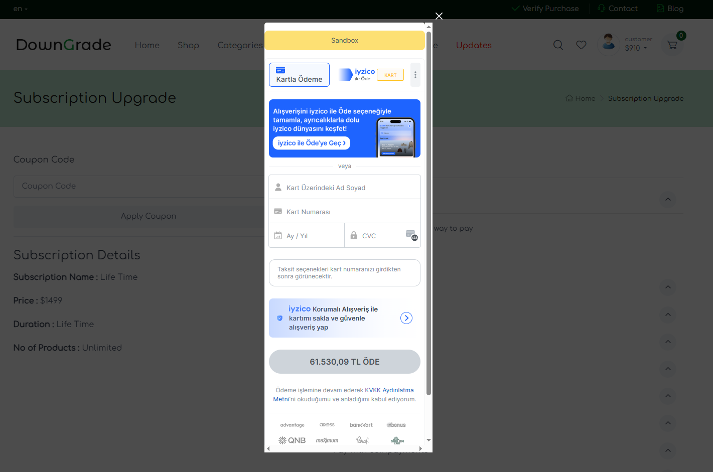 • Iyzico Mode - you can change Iyzico payment Demo/Live mode here