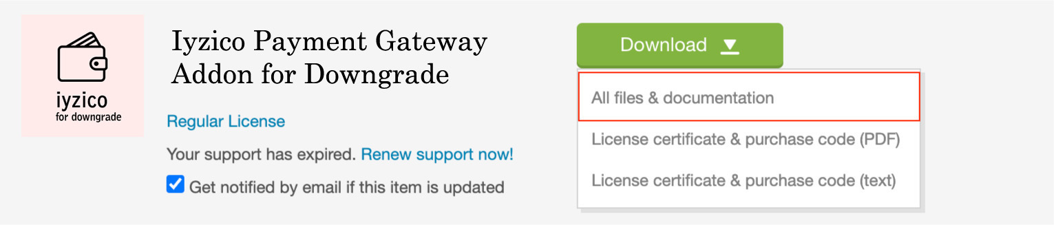• And put your envato addon purchased code and choose the Iyzico.zip file that was downloaded from the CodeCanyon and click on Submit. Install Addon Install Addon