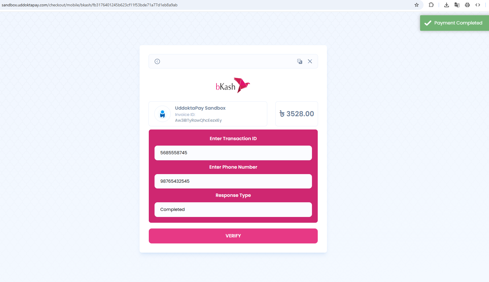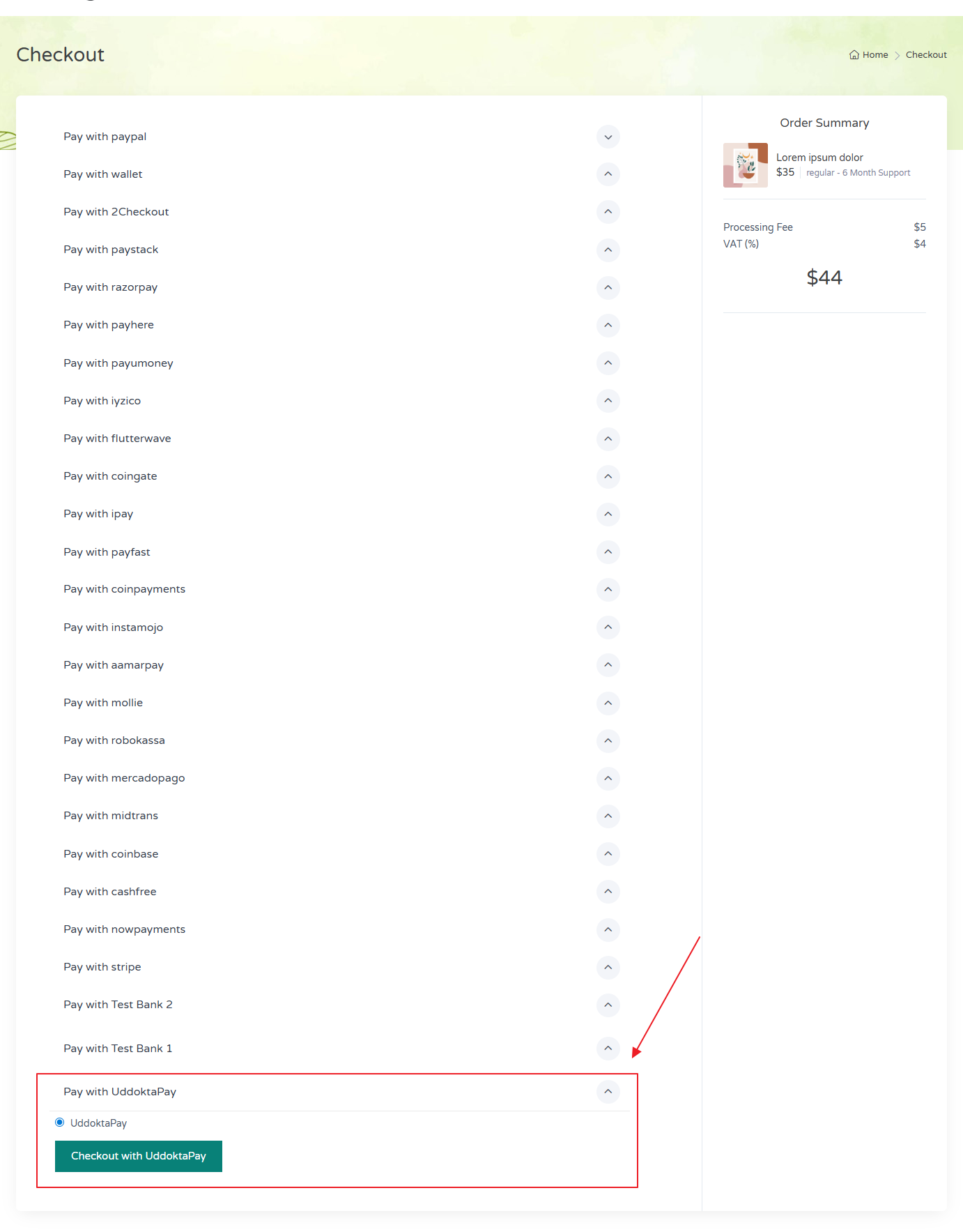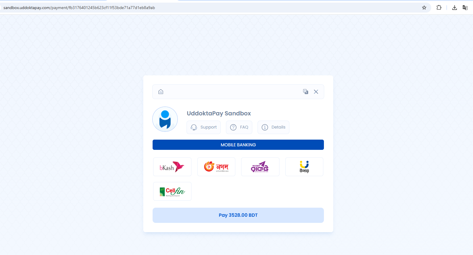 - UddoktaPay Test API Key - if you can choose demo mode, you can change UddoktaPay test api key here