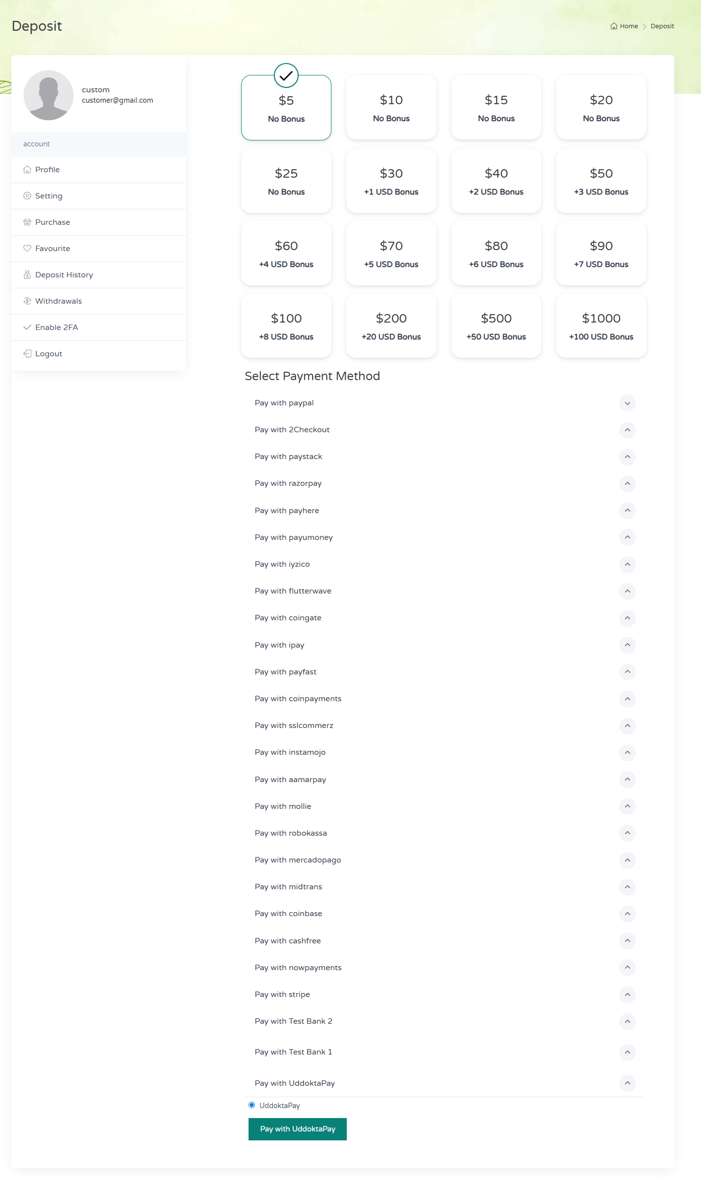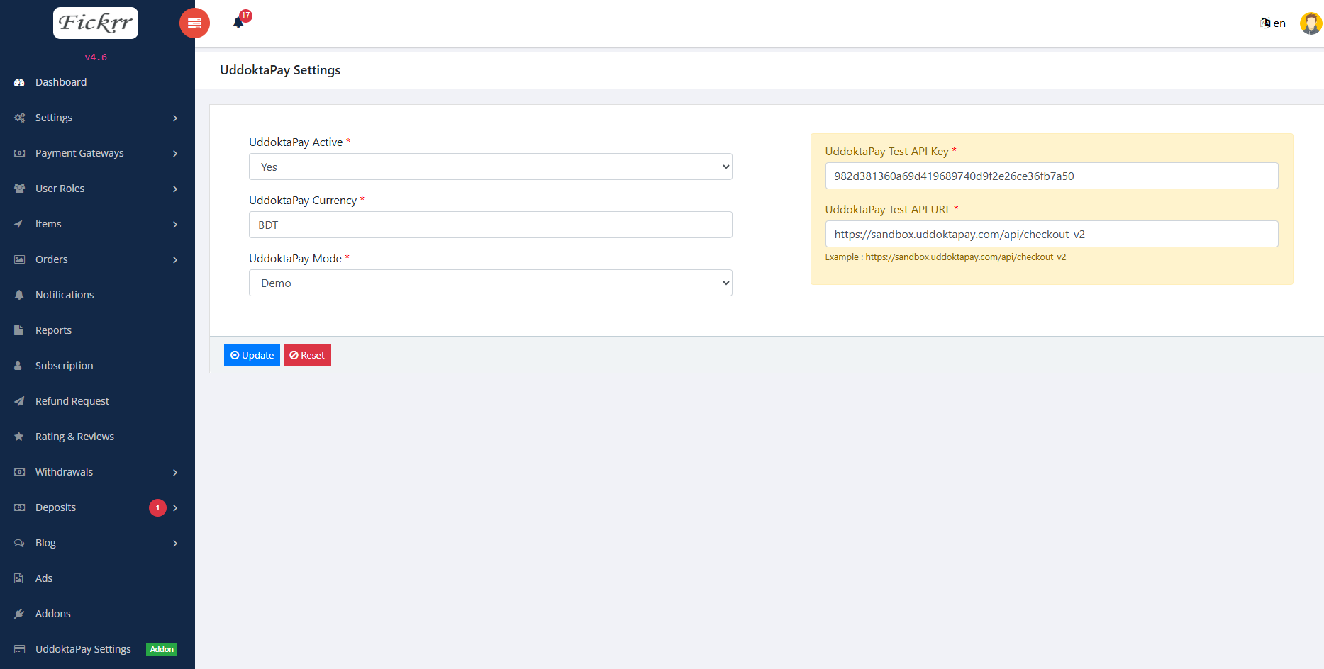 - UddoktaPay Live API Key - if you can choose live mode, you can change UddoktaPay live api key here